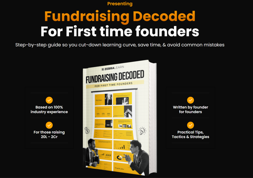 Presenting Fundraising Decoded For First time founders Step-by-step guide so you cut-down learning curve, save time, & avoid common mistakes